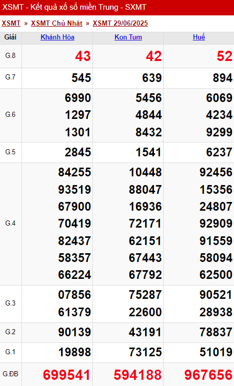 XSMT 29/6, kết quả xổ số miền Trung (KQXSMT) ngày 29/6/2025.
