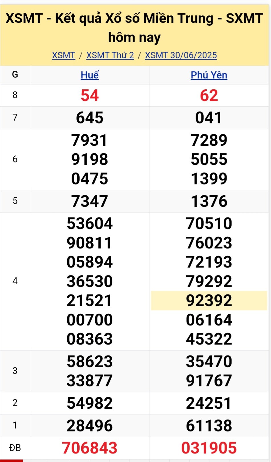 XSMT 30/6, kết quả xổ số miền Trung (KQXSMT) ngày 30/6/2025.