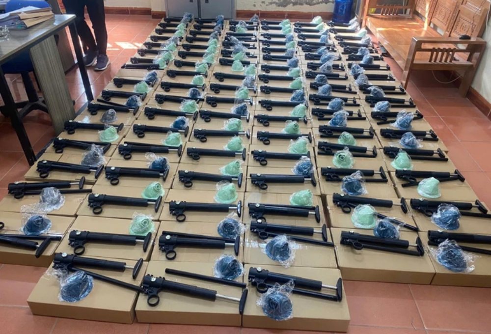 Tại đây, lực lượng chức năng phát hiện và thu giữ 319 khẩu súng quân dụng được ngụy trang dưới dạng linh kiện sản phẩm “thông tắc bồn cầu”. Theo cơ quan chức năng, các linh kiện khi lắp ráp hoàn chỉnh có khả năng sát thương và hình dáng tương tự súng quân dụng.