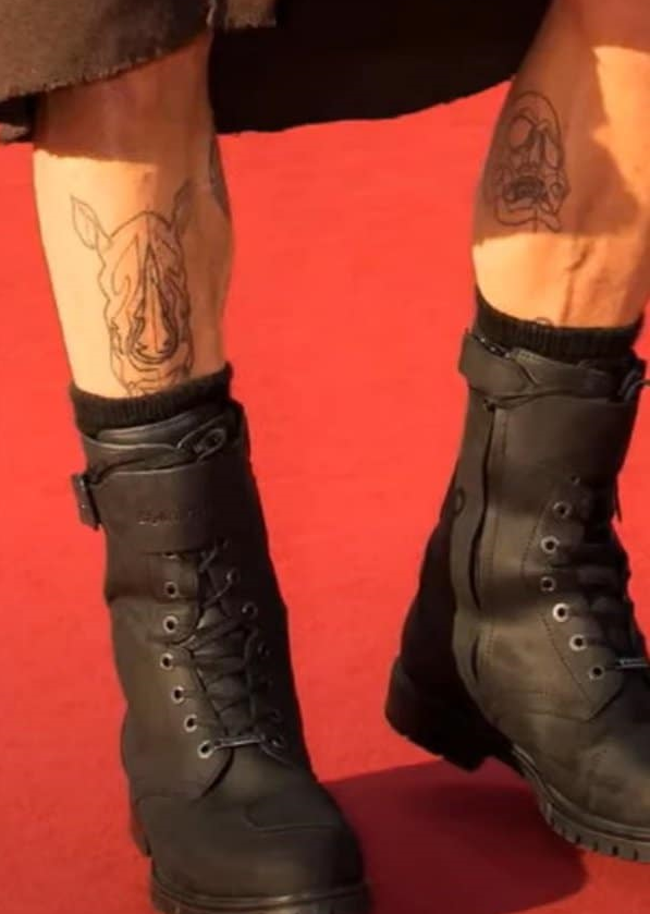 These two tattoos are some of the latest tattoos that Pitt has done. He revealed the outline of a human skull on his left leg and the outline of a rhinoceros head on his right leg while wearing a dress at the film’s premiere in Berlin. High speed train in 2019.