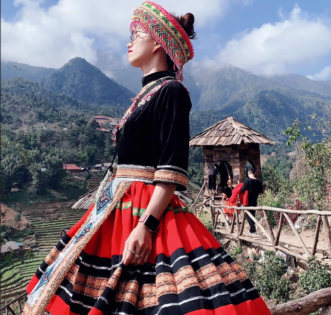 “Hôm ấy, mình mặc bộ đồ dân tộc đi hết một vòng tại bản Cát Cát, xã Hoàng Liên, thị xã Sa Pa (tỉnh Lào Cai) rồi chụp bộ ảnh kỷ niệm. Khi khoác lên bộ y phục này mình rất trân trọng vì có cảm giác khá đặc biệt, bởi đó là biểu tượng của người dân tộc nơi đây”, Trang nói.