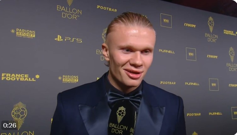 Ứng cử viên hàng đầu cho giải thưởng Quả bóng vàng 2023 - Erling Haaland đã có mặt tại buổi lễ cùng các đồng đội ở Man City.