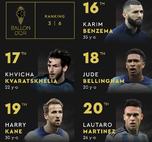 Ở vị trí thứ 17 là Khvicha Kvaratskhelia của Napoli. Đây là vị trí cao nhất đối với một cầu thủ bóng đá đến từ Georgia kể từ Georgi Kinkladze năm 1996 khi anh đứng thứ năm.