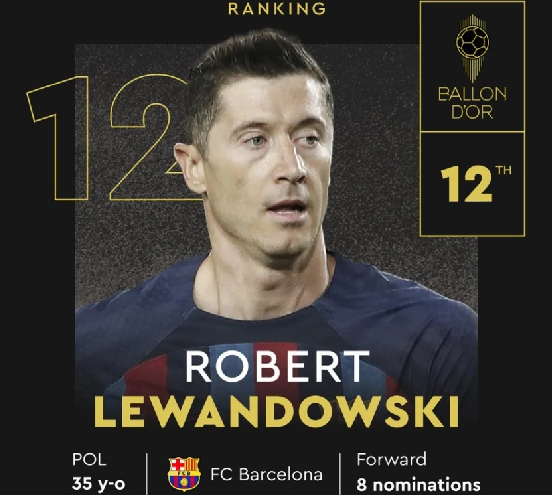 Robert Lewandowski đứng thứ 12