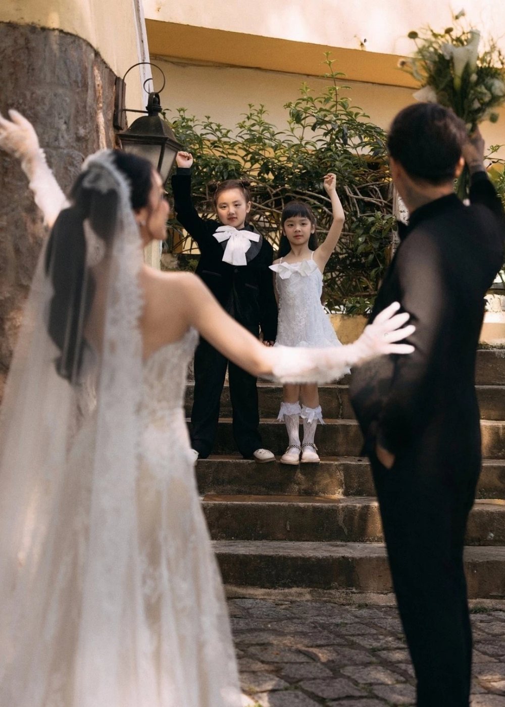 Sáng 13/7, trước thềm hôn lễ diễn ra, Đạt G và Bảo Ngọc chia sẻ bộ ảnh cưới. Trong những thước hình lãng mạn, Đạt G diện vest trong khi vợ anh gợi cảm với đầm ren cúp ngực. Hai con riêng của Bảo Ngọc cũng góp mặt trong bộ ảnh cưới.