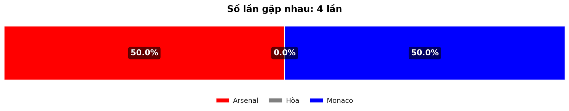 Điểm đáng chú ý là không có trận hòa nào giữa hai đội trong 4 lần gặp nhau. Mỗi trận đấu đều có một đội giành chiến thắng rõ ràng. Thành tích đối đầu này cho thấy các cuộc chạm trán giữa Arsenal và Monaco luôn đầy kịch tính và quyết liệt.