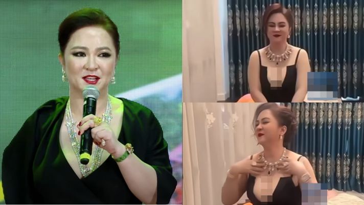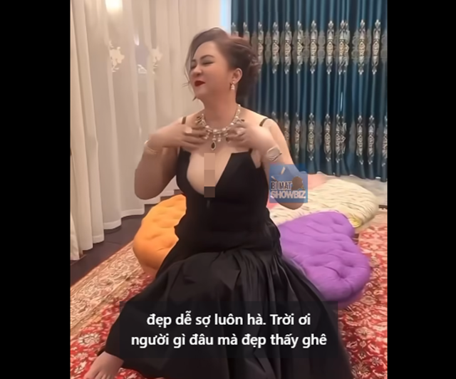 Mới đây, bà xã ông Dũng Lò Vôi trở thành tâm điểm bàn tán vì màn xuất hiện bị đánh giá là phản cảm trên Facebook. Cụ thể, cách đây không lâu, những đoạn clip bà Nguyễn Phương Hằng diện váy hai dây trễ nải, trang điểm kỹ càng, diện bộ trang sức đắt đỏ được chia sẻ rầm rộ. Điều khiến cư dân mạng chú ý đầu tiên là phần váy được khoét sâu, để lộ hơn một nửa vòng 1 của nữ doanh nhân. Không khó để thấy đôi “gò bồng đảo” căng đầy, kích thước lớn của bà Hằng.