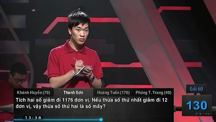 Trong phần thi về đích của chương trình Đường lên đỉnh Olympia, thí sinh Thanh Sơn phải đối mặt với câu đố Toán học cực khó trong gói câu hỏi 60 điểm.