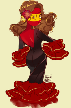 Nếu chúng ta đề cập đến thực tế, các nhân vật của Countryhumans thường mặc quần áo tương ứng với khuôn mẫu, chẳng hạn như phụ nữ Tây Ban Nha mặc váy Flamenco hoặc áo dài cổ điển hơn. Nói chung, cô ấy cũng mặc áo sơ mi trắng và quần jean, và thường mang theo một chiếc quạt (abanico trong tiếng Tây Ban Nha). Cô ấy cũng được đại diện với một bộ đồ quân sự của các chỉ huy của Đế chế Tây Ban Nha.