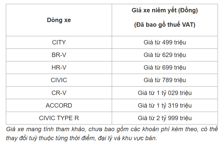 Bảng giá xe ô tô Honda mới nhất tại Việt Nam tháng 10/2025 sẽ được cập nhật chi tiết trong bài viết dưới đây.