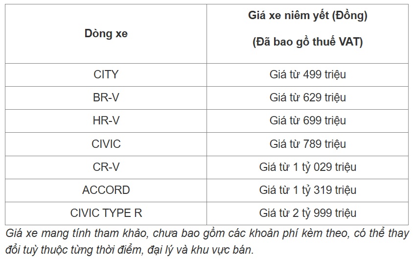 Bảng giá xe ô tô Honda mới nhất tại Việt Nam tháng 12/2025 được cập nhật chi tiết trong bài viết dưới đây.
