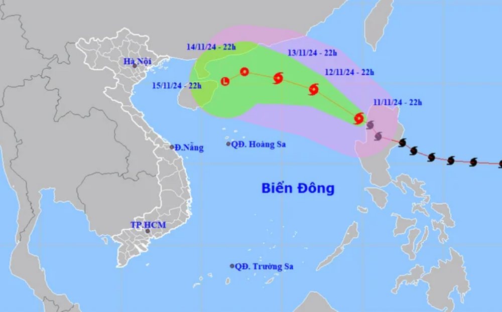 Khoảng 22h ngày 13/11, bão trên vùng biển phía Bắc khu vực Bắc Biển Đông, đổi hướng Tây Tây Bắc, tốc độ 10-15km/h, cường độ suy yếu dần. Sức gió mạnh nhất vùng gần tâm bão mạnh cấp 8-9, giật cấp 11.
