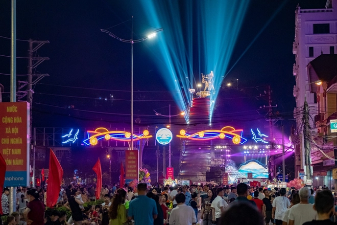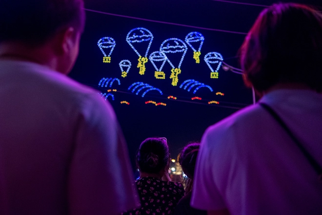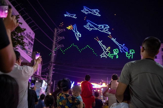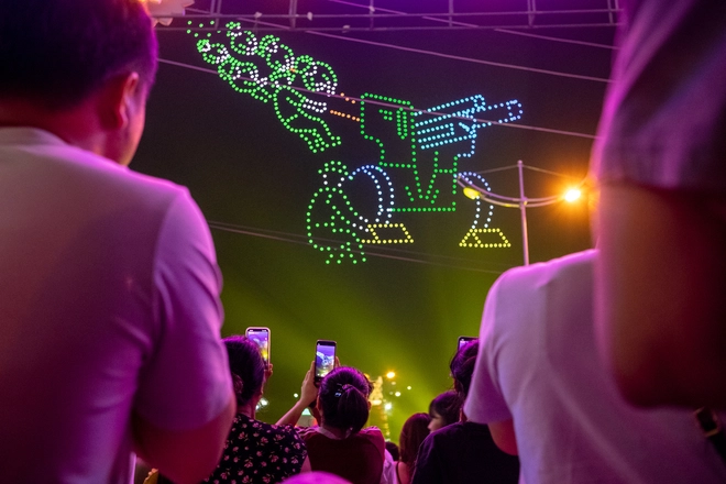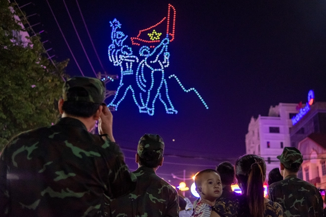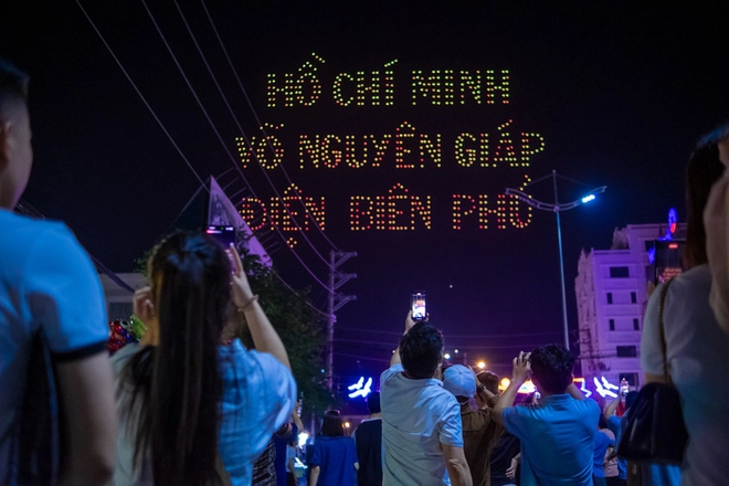 Bầu trời Điện Biên rực rỡ với màn "xếp hình" của 700 drone phát sáng, người dân và du khách thích thú quay lại từng "ngốc ngách"