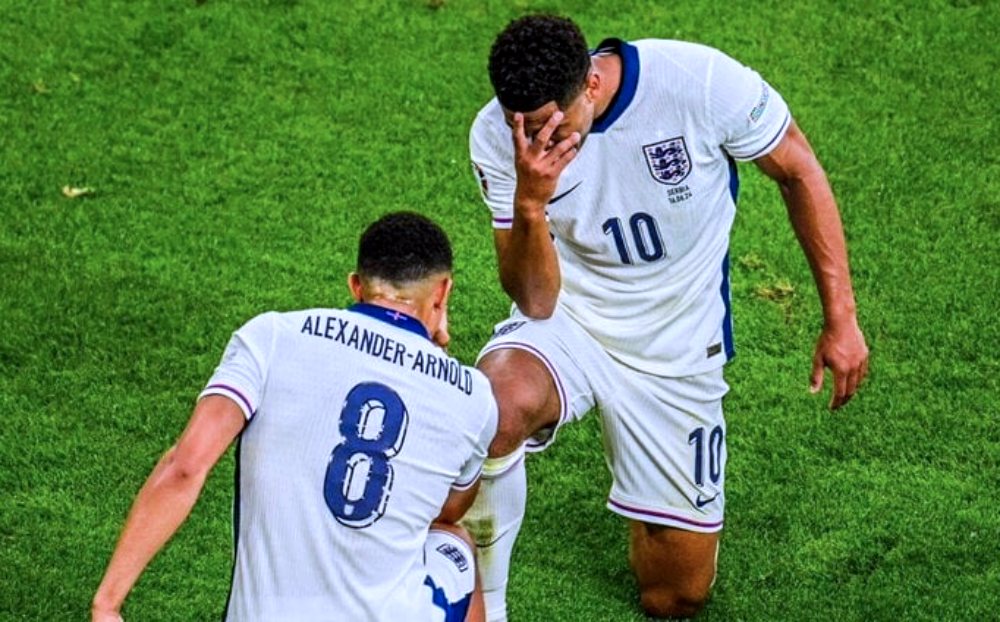 Bellingham ăn mừng bàn thắng cùng Trent Alexander-Arnold.