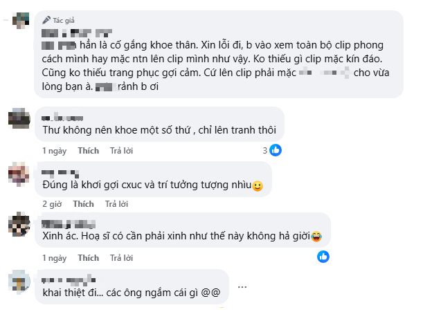 Bên cạnh những bình luận khen ngợi tài năng và sự sáng tạo, không ít ý kiến tỏ ra gay gắt, cho rằng Minh Thư đang cố tình khoe thân, sử dụng ngoại hình để thu hút lượt xem thay vì tập trung hoàn toàn vào nghệ thuật.