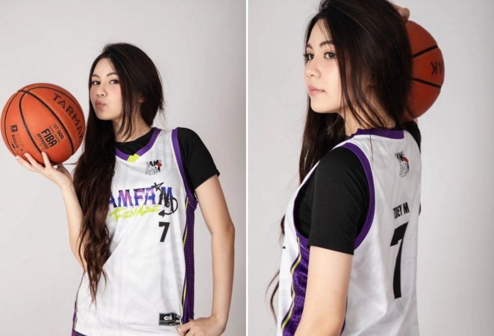 Hạt Dẻ hiện thi đấu cho câu lạc bộ bóng rổ JamFam, thường ra sân ở vị trí shooting guard, nhận được sự ủng hộ từ cả gia đình. Ảnh: Mai Thảo Ngọc/FB.