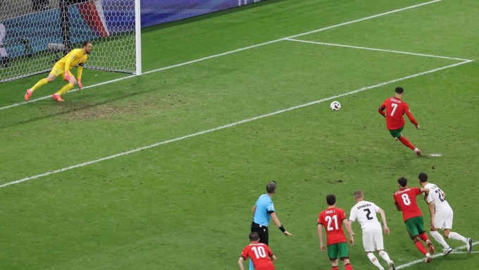 Cristiano Ronaldo đá hỏng penalty ở hiệp phụ, nhưng Bồ Đào Nha vẫn vào tứ kết Euro 2024 nhờ hạ Slovenia 3-0 trong loạt luân lưu, sau khi hai đội hòa 0-0 ở 120 phút thi đấu.