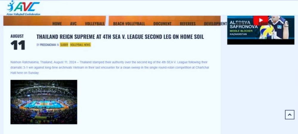Bài đăng về SEA V.League 2024 trên trang chủ của AVC