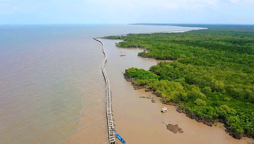 Bờ kè đê biển Đông góp phần bảo vệ rừng phòng hộ, chống biến đổi khí hậu.