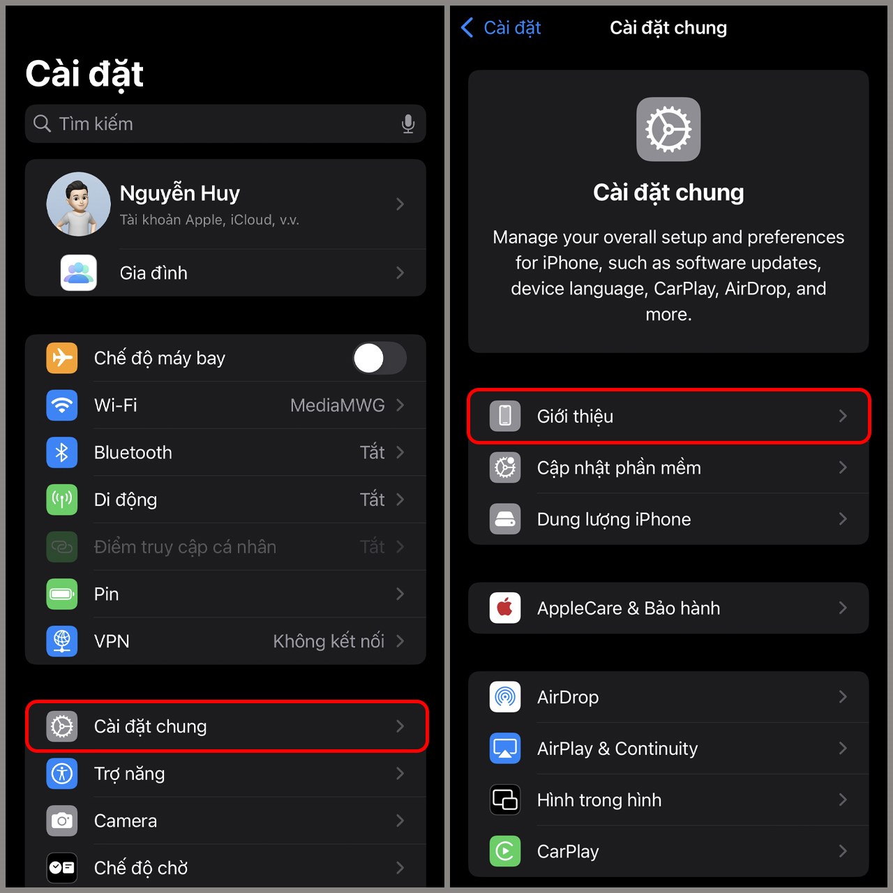 Bước 1. Bạn vào Cài đặt > Cài đặt chung > Giới thiệu.