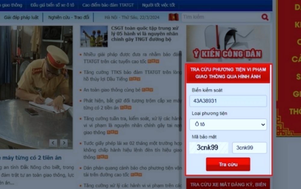 Cách tra cứu phạt nguội qua website Cục CSGT