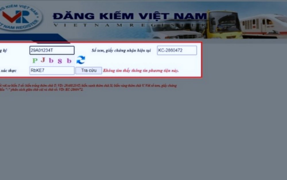 - Phải nhập cả biển số xe và số tem, giấy chứng nhận kiểm định
