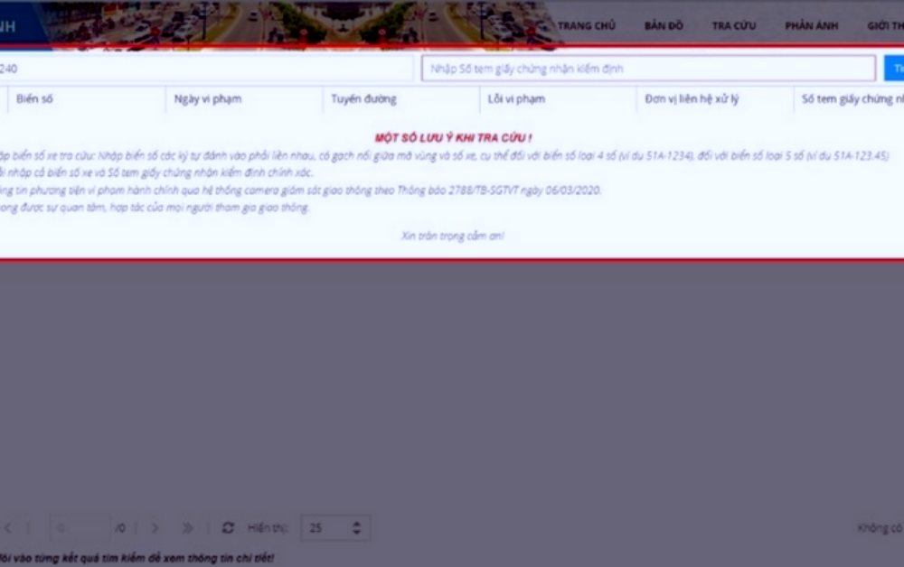 Cách tra cứu phạt nguội qua website Sở Giao thông Vận tải