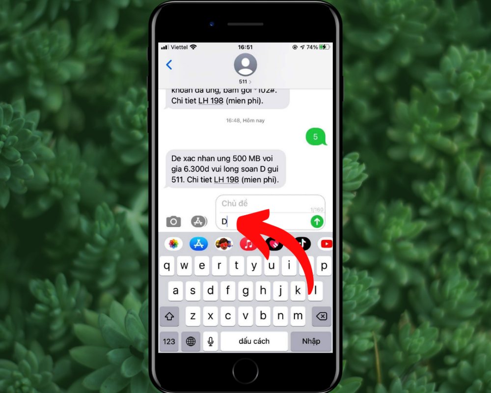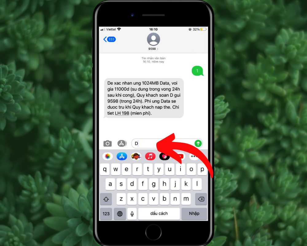 ✅Bước 2: Nếu đồng ý đăng ký ứng data Viettel soạn phím D => Bấm phím Gửi.