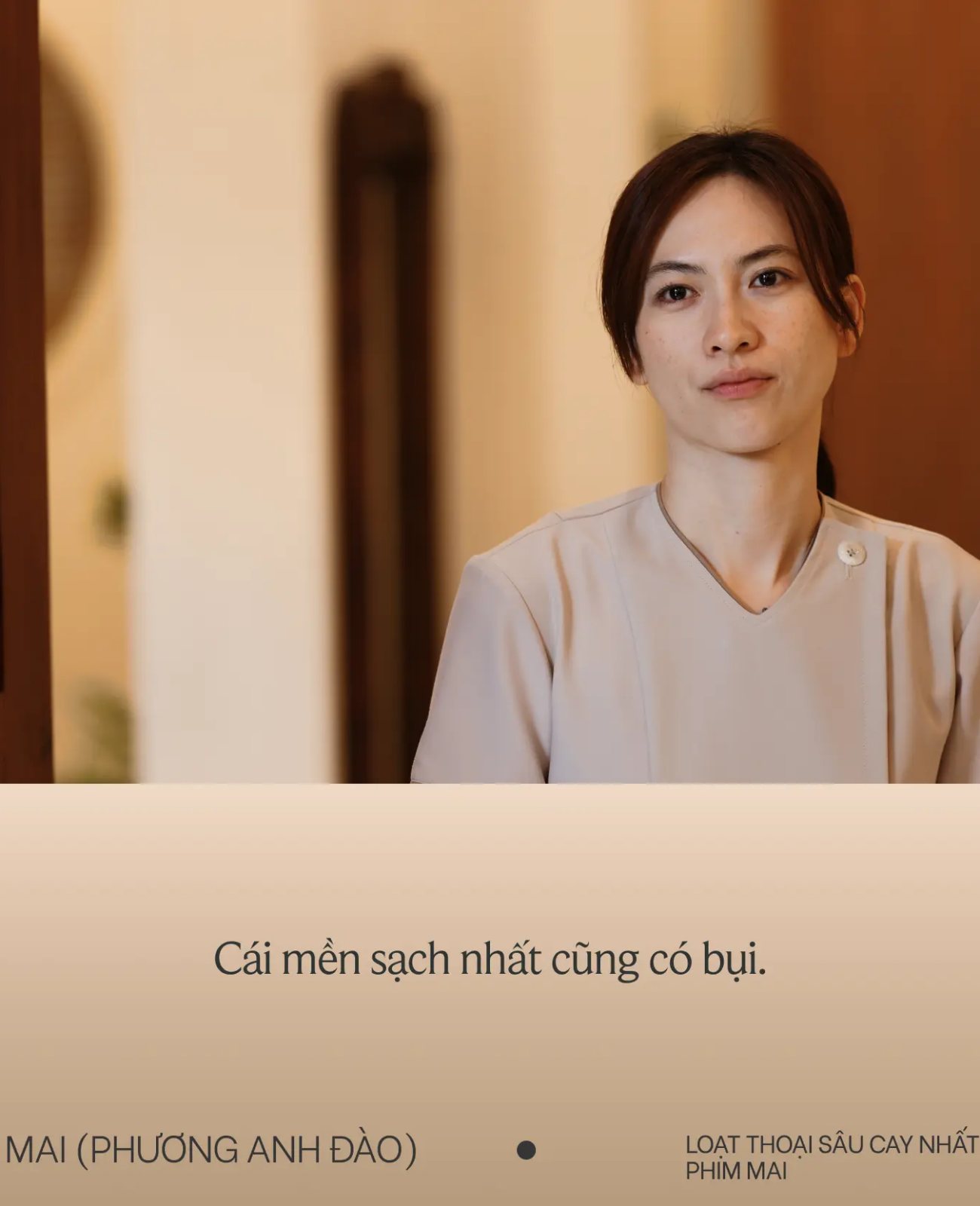 “Cái mền sạch nhất cũng có bụi”: Bối cảnh câu nói này xuất hiện khi Mai và Bình Minh (Uyển Ân) có cuộc trò chuyện, qua đó Mai muốn nhấn mạnh rằng mỗi người đều có những bí mật và không ai hoàn hảo. Câu nói phản ánh quan điểm về sự chấp nhận và thông cảm với những khuyết điểm của bản thân và người khác.