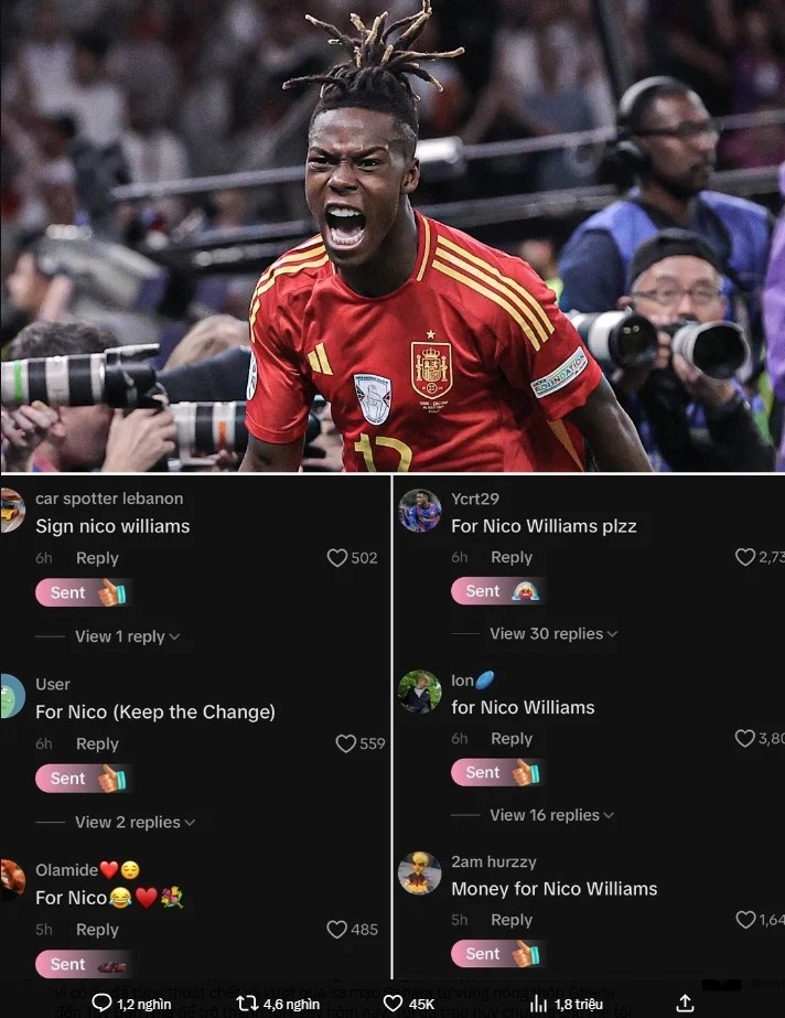 Theo ESPN cập nhật mới nhất, lượng fan hâm mộ quyên góp đang tăng lên rất nhanh với những khẩu hiệu: "Ký hợp đồng với Nico", "100% đón Nico",... trên các video ở nền tảng mạng xã hội Tiktok của Barcelona.