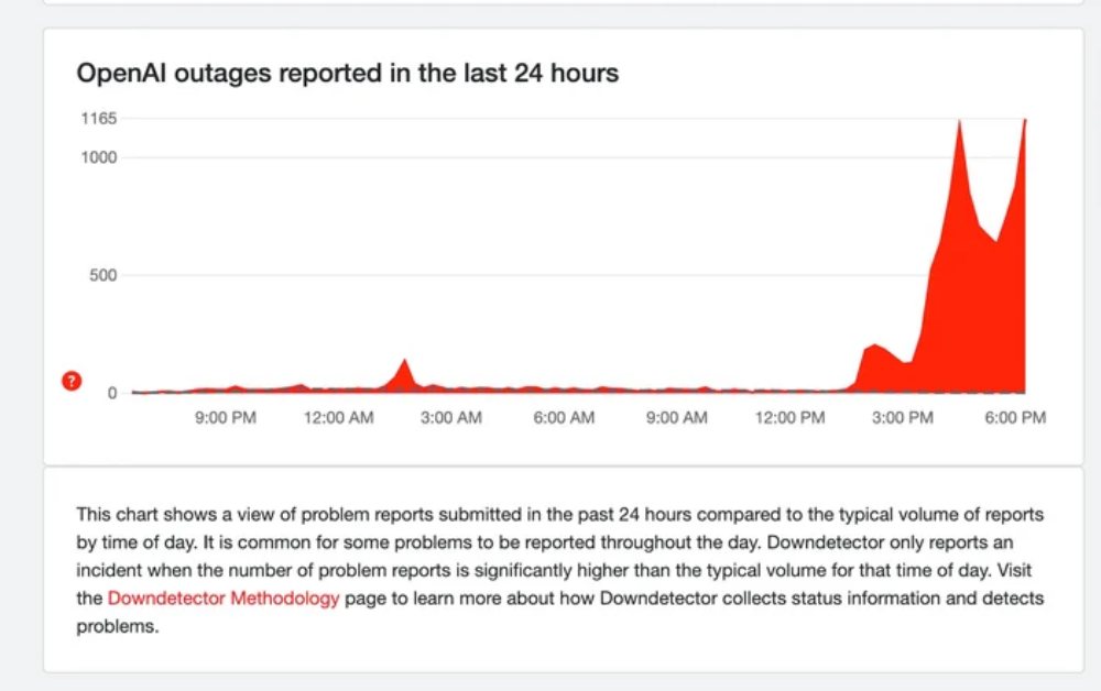 Không phải lần đầu công cụ nổi tiếng của OpenAI gặp sự cố diện rộng. Lượng người dùng tăng lên chóng mặt, khiến mỗi lần nó xảy ra lỗi, mức độ ảnh hưởng càng nghiêm trọng hơn. Vấn đề lần này diễn ra vào đúng khung giờ làm việc buổi chiều của các bước châu Âu.