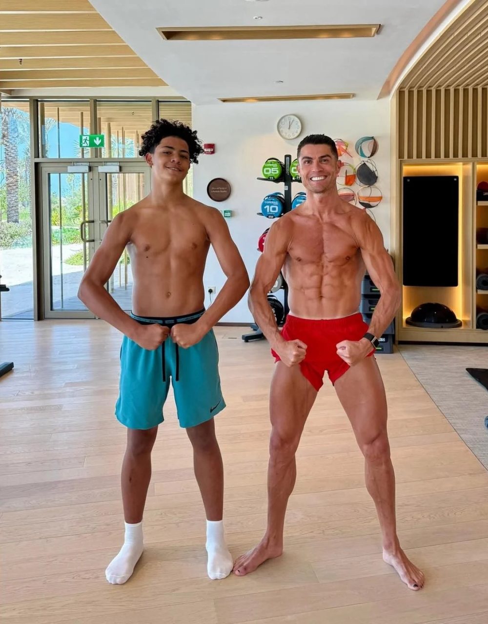 Ở tuổi 14, con trai cả của Ronaldo đã đạt chiều cao tương đương ông bố nổi tiếng toàn thế giới (1,87 m).