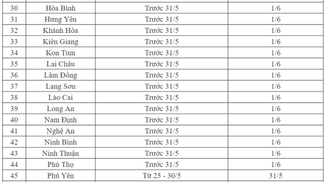 Dưới đây là lịch nghỉ hè của học sinh tại 63 tỉnh, thành phố.