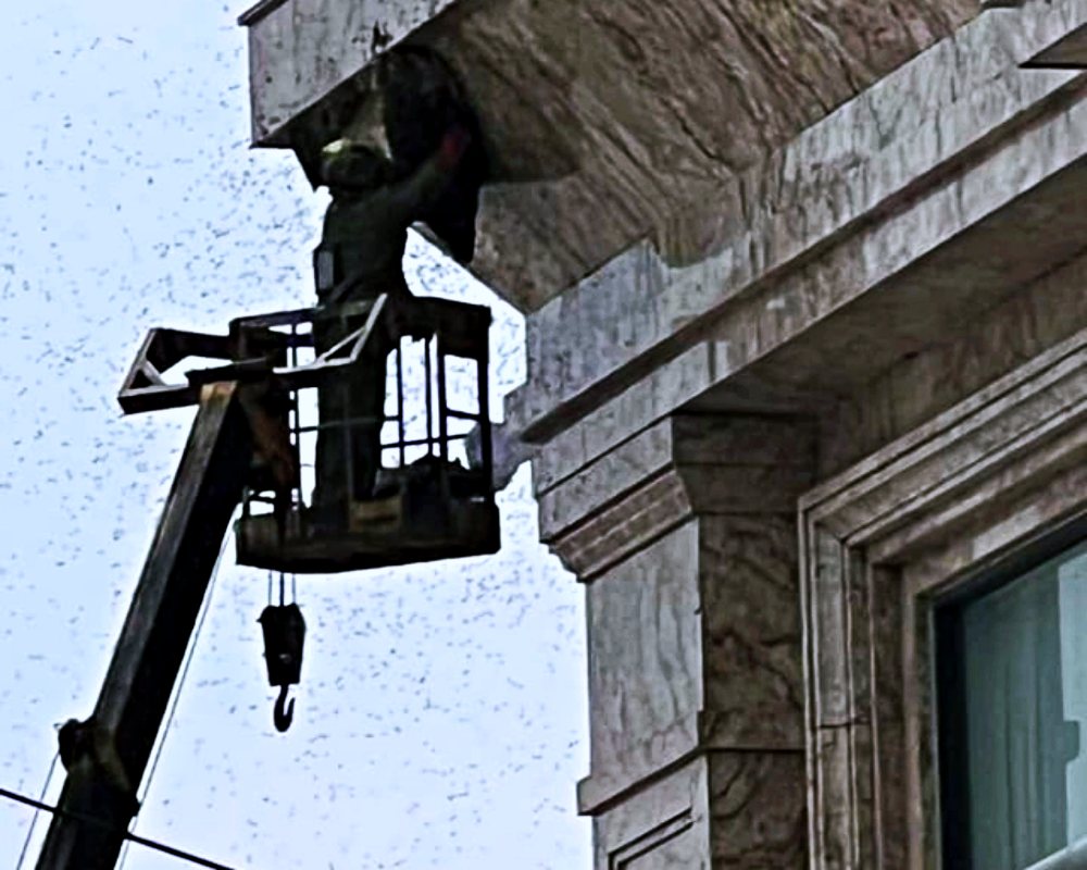 Theo dõi hình ảnh trong đoạn clip cho thấy, trong lúc xung quanh có nhiều phương tiện đang lưu thông thì một số người đã điều khiển xe thang nâng đến bên ngoài khu vực khách sạn T.S ở TP.Hải Phòng để bắt tổ ong khá lớn tại đây.