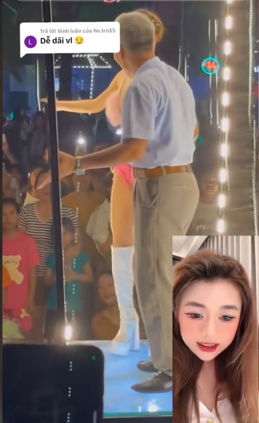 Cũng trong đoạn clip, mặc dù Quỳnh Nga đã rất khó xử, liên tục né tránh trước hành vi của người đáng t.uổi cha chú. Nhưng cụ ông này vẫn không hề có ý định buông tha, ông chọn cách càng tiến sát gần vào cơ thể Quỳnh Nga.