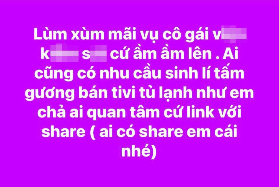 Cũng với đó, là Đính kèm hình ảnh cô gái, 'chủ thớt' chia sẻ công khai một đường link 'lạ' được cho là clip liên quan đến vụ việc. Dù vậy, bên dưới bài đăng vẫn xuất hiện hàng chục ngàn bình luận có nội dung 'xin link', một số người dùng ngôn từ khiếm nhã để ám chỉ việc mình đã xem được đoạn clip của 'Đặng Lê Quỳnh Giang'