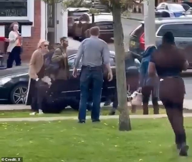 Một tên côn đồ mặc quần áo màu đen tóm lấy người đàn ông lớn tuổi rồi hất ông xuống dưới đất giữa ban ngày. Sau đó, nhóm trộm chạy về chiếc xe SUV Volvo màu xám rồi rời đi.