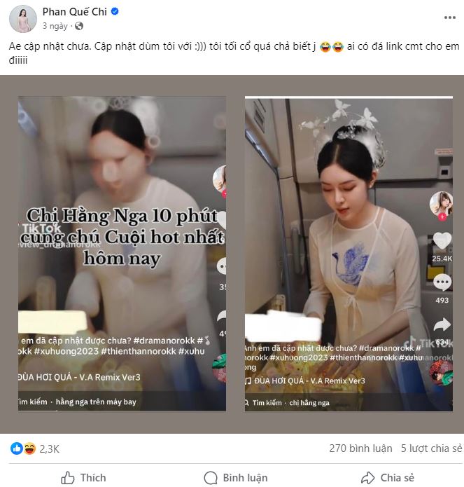 Kèm theo bài đăng này là hình ảnh của Phan Quế Chi. Ngay khi được chia sẻ, bên dưới bài viết xuất hiện nhiều bình luận 'xin link' phản cảm.