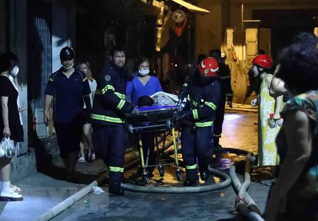 Xe chữa cháy chỉ có thể đỗ cách hiện trường khoảng 3-400m, và lực lượng cứu hỏa đã phải dẫn vòi rồng vào ngõ sâu để tiến hành dập lửa.