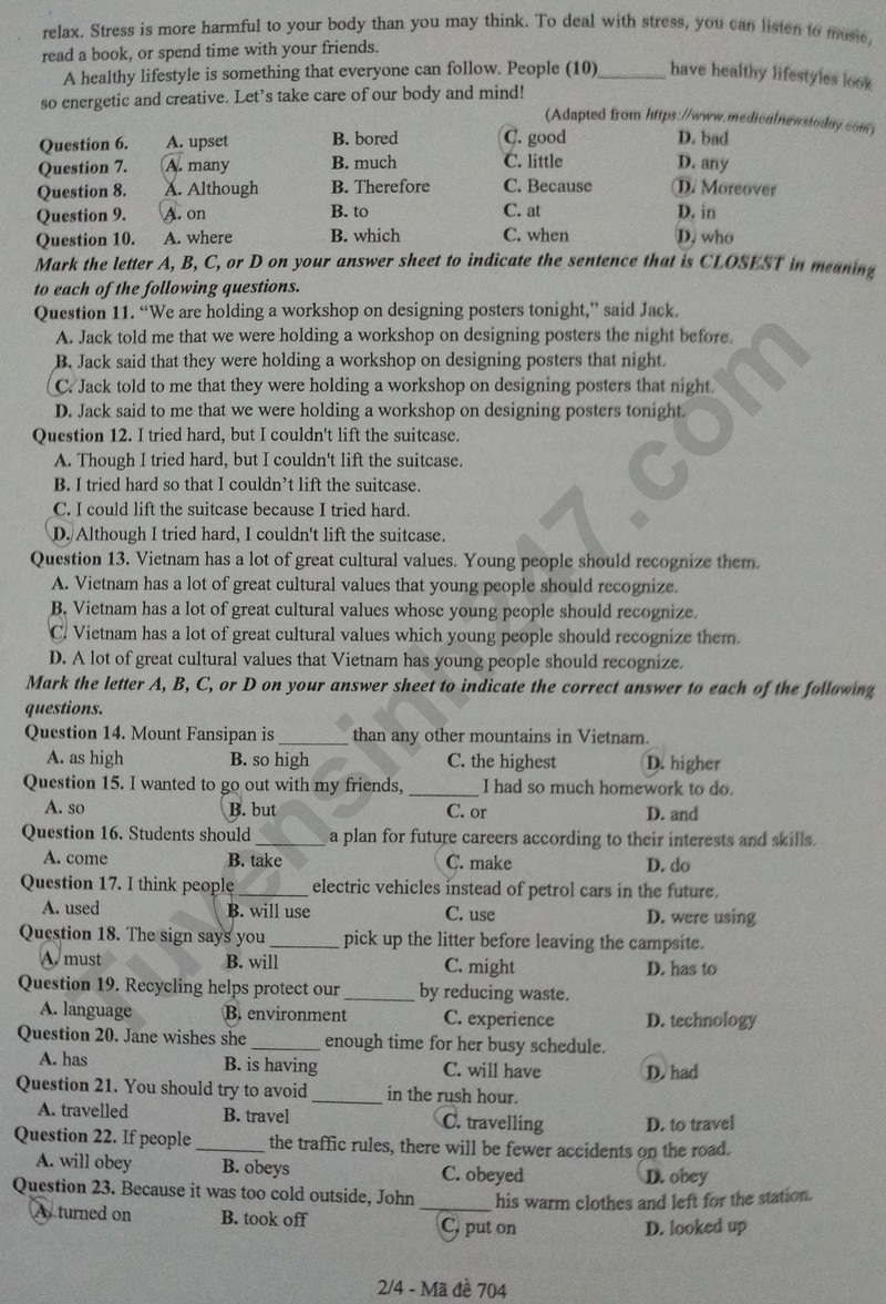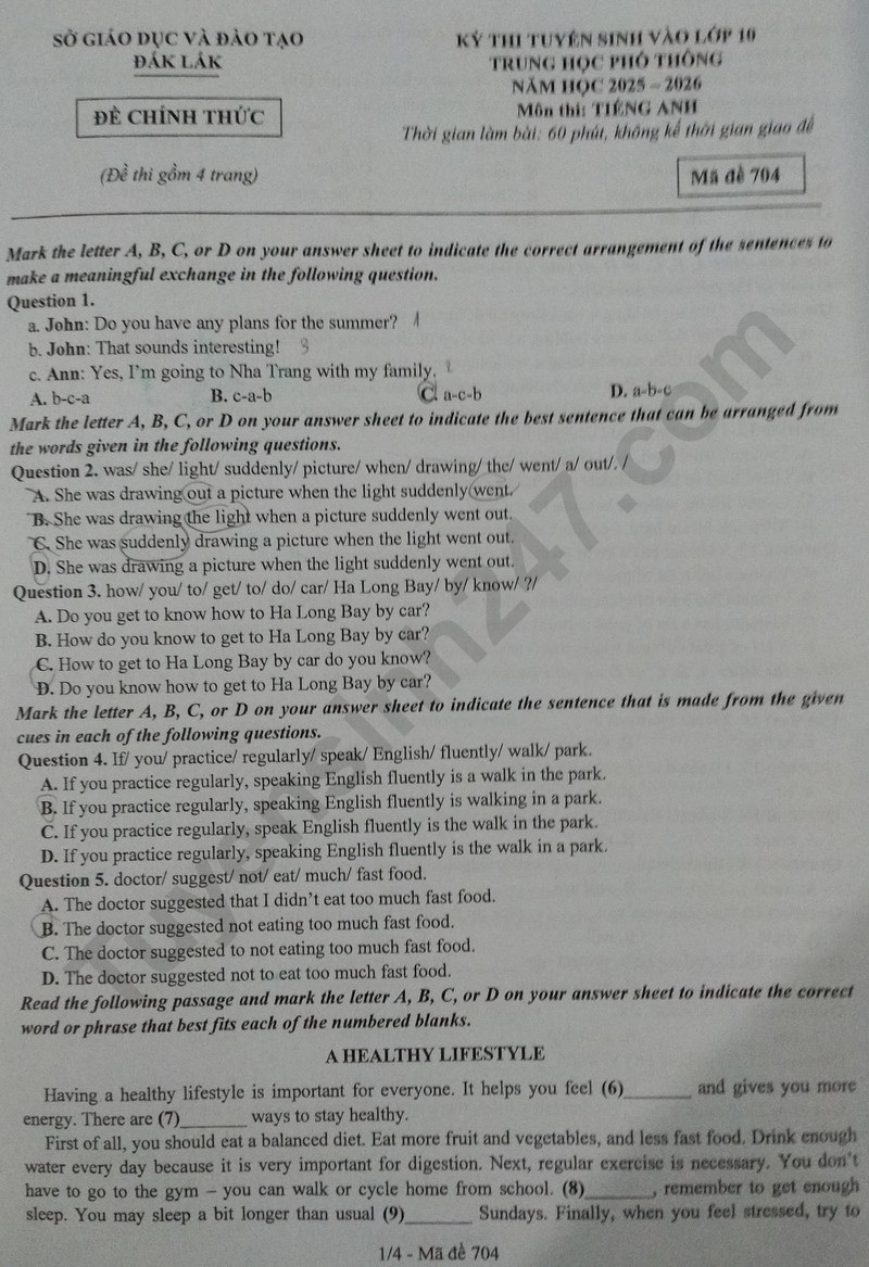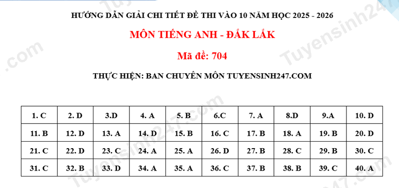Đáp án đề thi vào lớp 10 năm 2025 môn Tiếng Anh tại Đắk Lắk. Nguồn ảnh: tuyensinh247