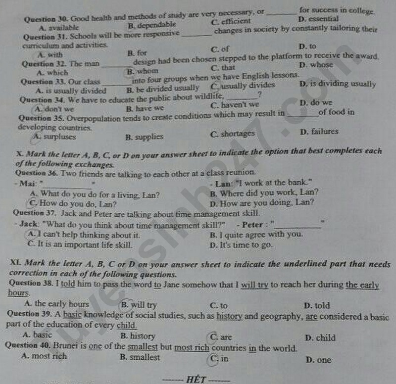 Đề thi vào lớp 10 năm 2025 môn Tiếng Anh tại Đắk Lắk. Nguồn ảnh: tuyensinh247