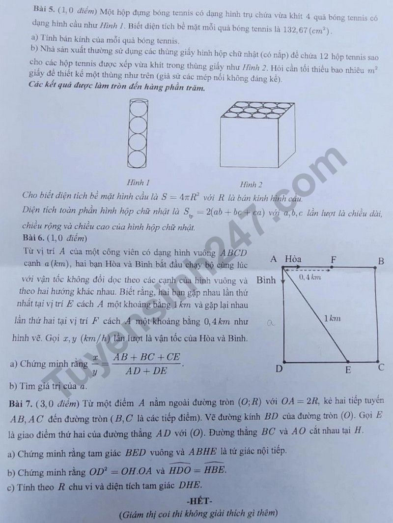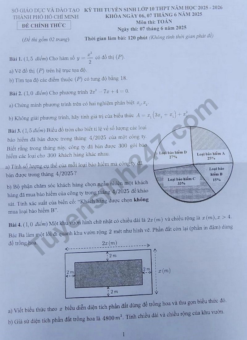 Đề thi vào lớp 10 năm 2025 môn Toán tại Thành phố Hồ Chí Minh. Nguồn ảnh: tuyensinh247