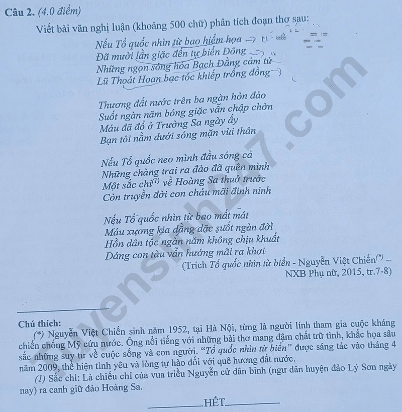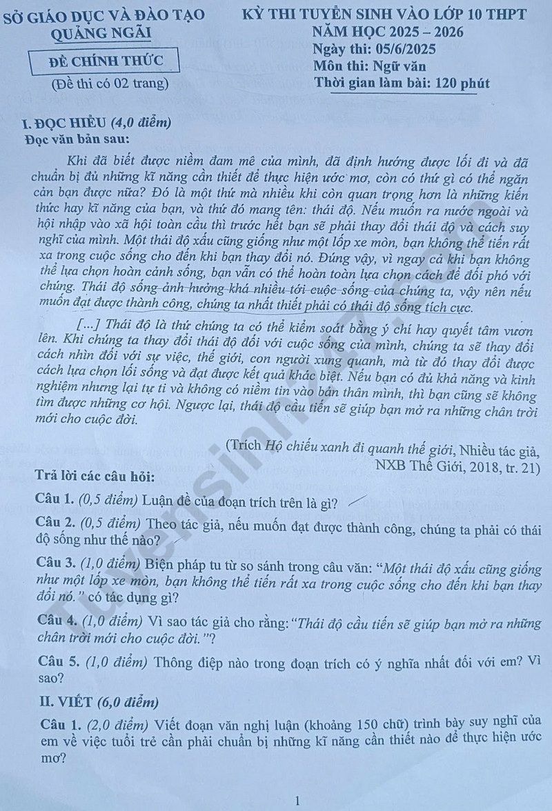 Đề thi vào lớp 10 năm 2025 môn Văn tại Quảng Ngãi. Nguồn ảnh: tuyensinh247