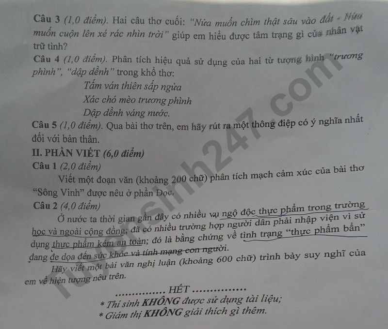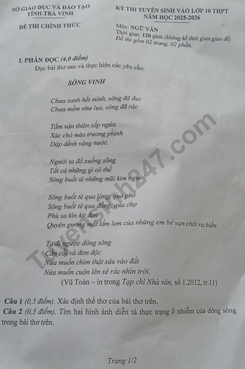 Đề thi vào lớp 10 năm 2025 môn Văn tại Trà Vinh. Nguồn ảnh: tuyensinh247