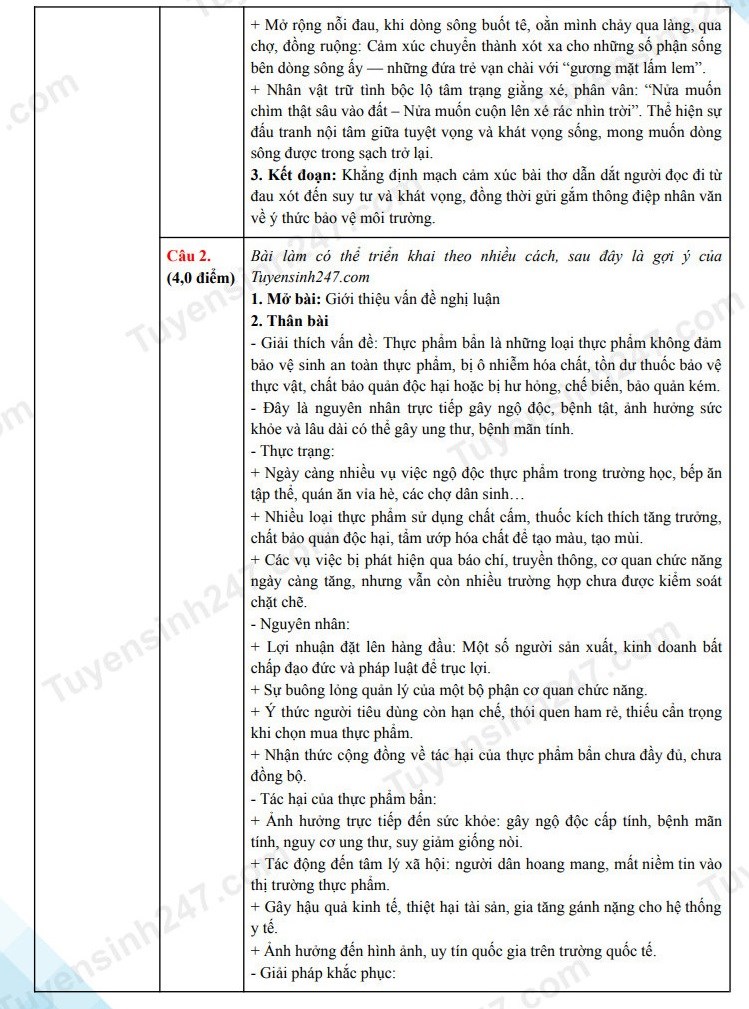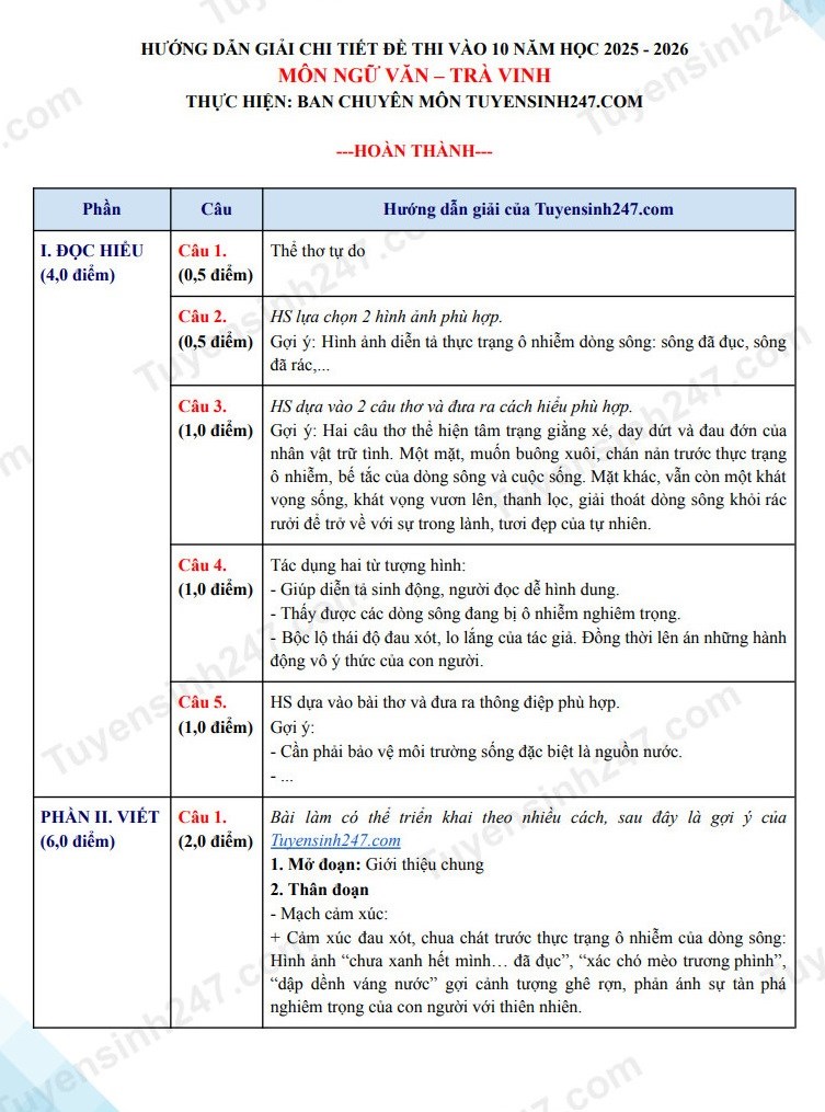 Đáp án đề thi vào lớp 10 năm 2025 môn Văn tại Trà Vinh. Nguồn ảnh: tuyensinh247