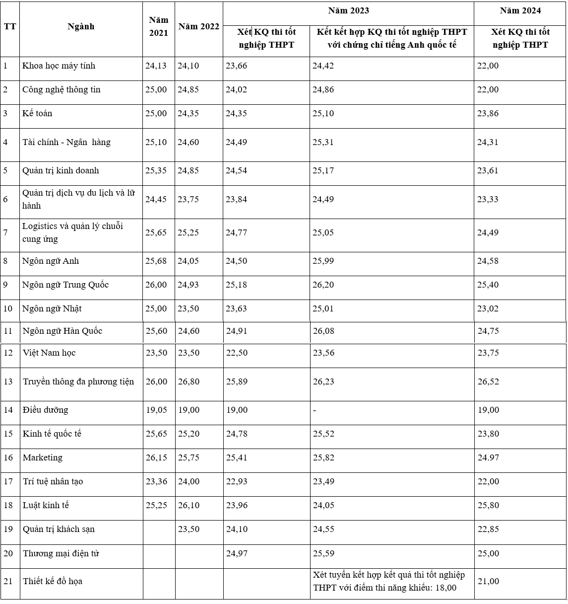 Dưới đây là điểm chuẩn Đại học Thăng Long 4 năm gần nhất: