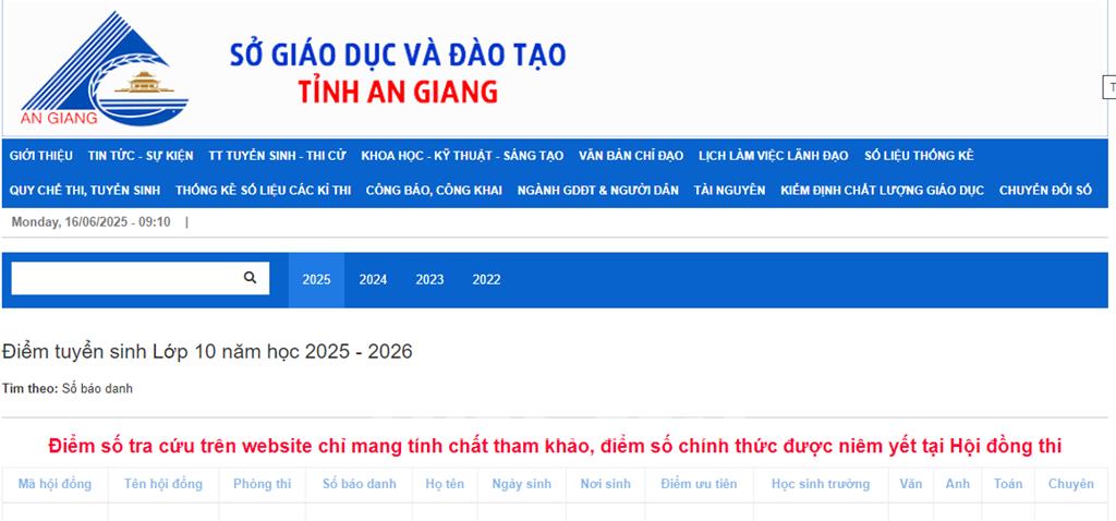 Tra cứu điểm thi vào lớp 10 An Giang năm 2025