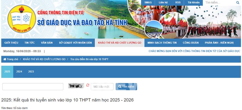 Tra cứu điểm thi vào lớp 10 Hà Tĩnh năm 2025