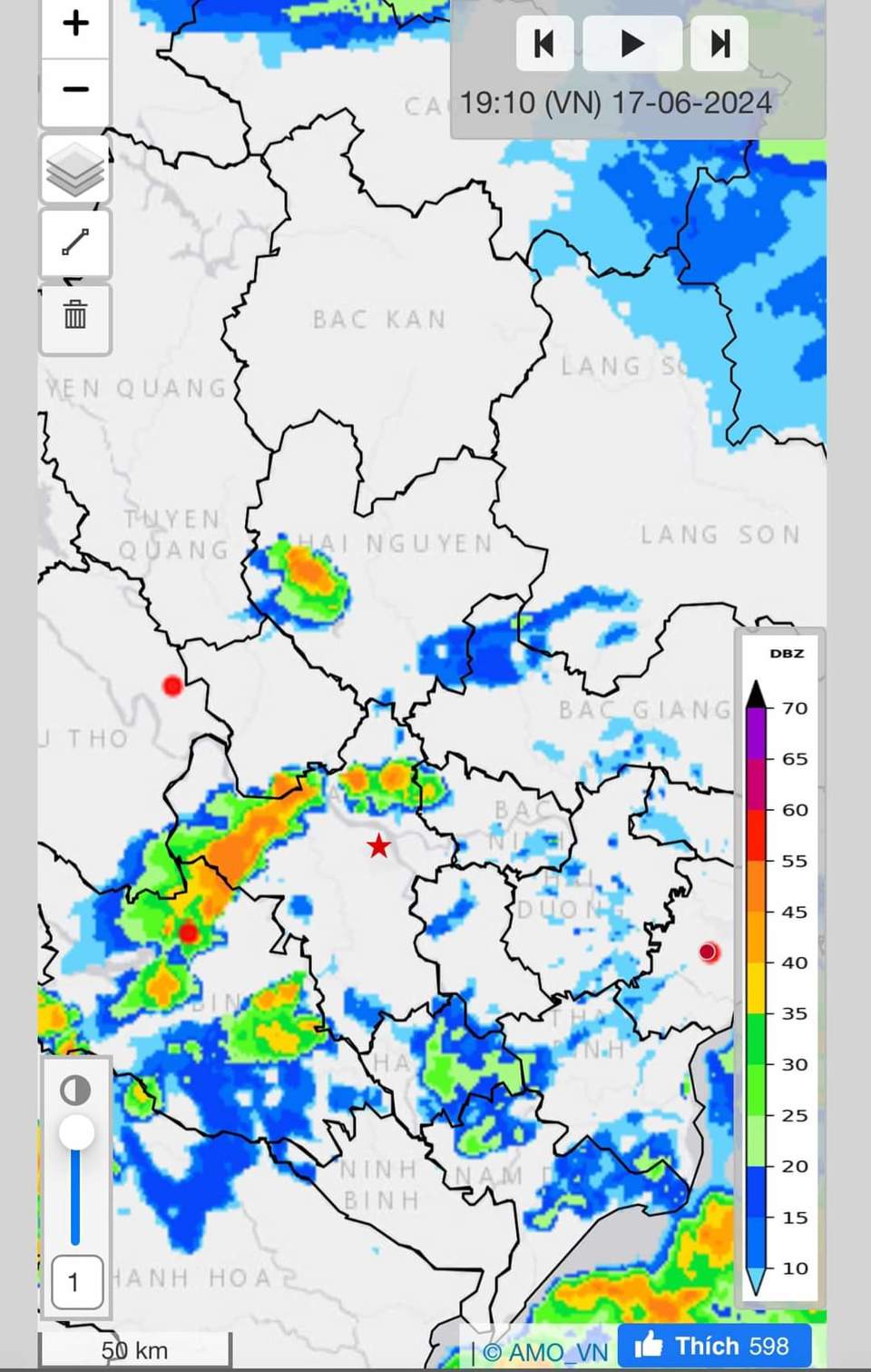 Qua theo dõi trên ảnh vệ tinh, số liệu định vị dông sét và ra đa thời tiết cho thấy các quận, huyện: Ba Vì, Thạch Thất, Phúc Thọ, thị xã Sơn Tây, Đông Anh có mưa rào và dông.