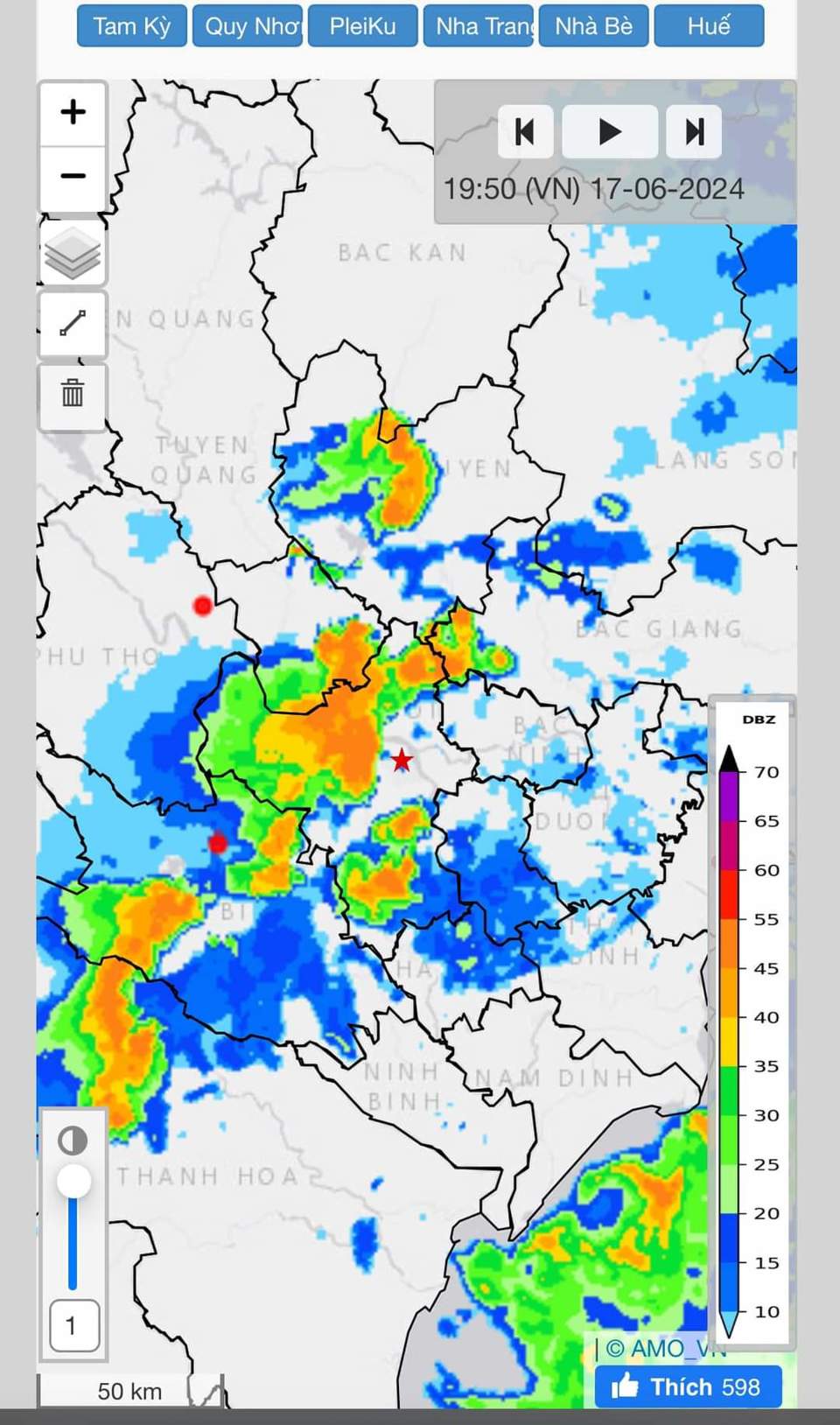 Tối 17/6, Trung tâm Dự báo Khí tượng Thủy văn Quốc gia vừa đưa ra thông tin cảnh báo mưa lớn, dông, lốc, sét khu vực nội thành Hà Nội.